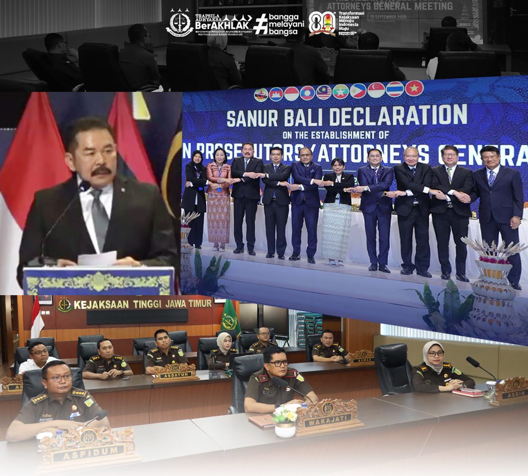 Surabaya – Wakil Kepala Kejaksaan Tinggi Jawa Timur, Dr. Hari Wibowo, S.H., M.H., bersama para Asisten dan Kepala Bagian Tata Usaha, mengikuti secara virtual kegiatan Sanur Bali Declaration on the Establishment of The ASEAN Prosecutors/Attorneys General Meeting (APAGM) dari Ruang Rapat Kejati Jatim, pada Senin (15/9/2025).