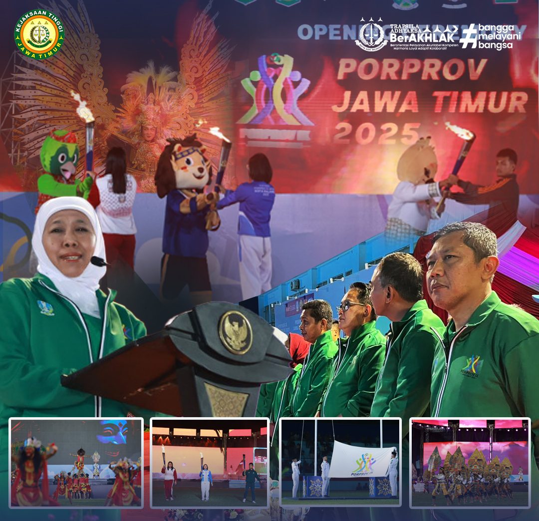 Malang — Kepala Kejaksaan Tinggi Jawa Timur yang diwakili oleh Wakil Kepala Kejaksaan Tinggi Jawa Timur, Setiawan Budi Cahyono, S.H., M.Hum., turut menghadiri kegiatan Pembukaan Pekan Olahraga Provinsi (Porprov) IX Jawa Timur 2025 yang secara resmi dibuka oleh Gubernur Jawa Timur, Khofifah Indar Parawansa, di Stadion Gajayana, Kota Malang, Sabtu (28/6/2025).