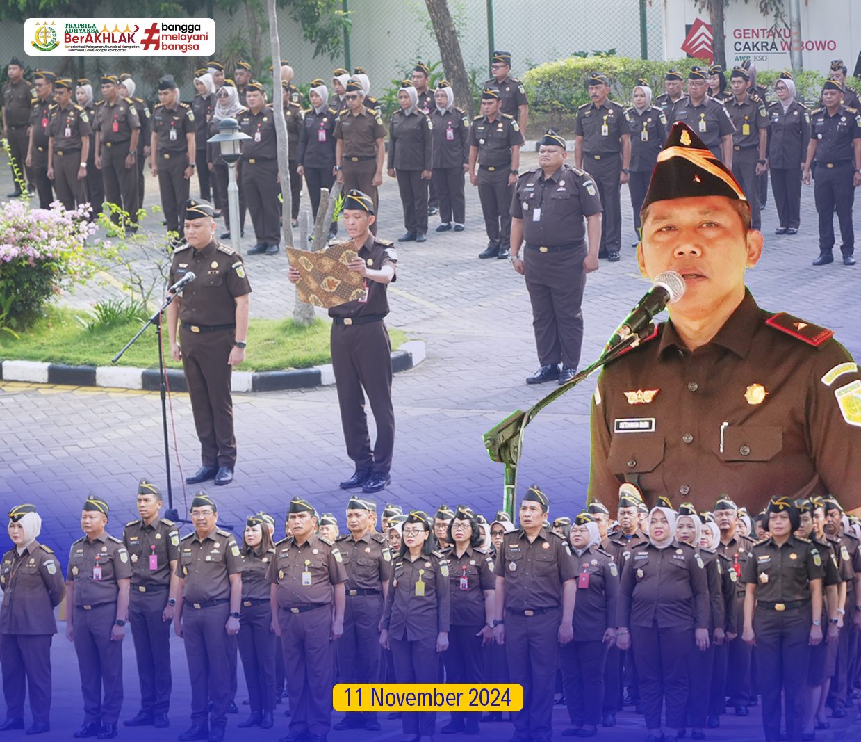 Surabaya – Wakil Kepala Kejaksaan Tinggi (Wakajati) Jawa Timur Setiawan Budi Cahyono, SH., M.Hum. memimpin apel pagi di halaman kantor Kejaksaan Tinggi Jawa Timur, Senin (11/11/2024). Dalam kesempatan tersebut, Wakajati menekankan pentingnya menjaga integritas, netralitas ASN dalam menghadapi Pilkada 2024, serta meningkatkan disiplin kerja.